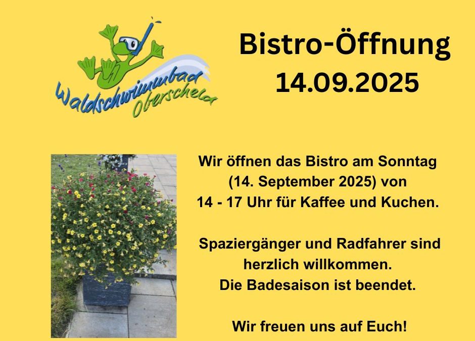 Auch wenn die Badesaison beendet ist, öffnet das Bistro am Sonntag (14. September) für Wanderer, Spaziergänger und Radfahrer.