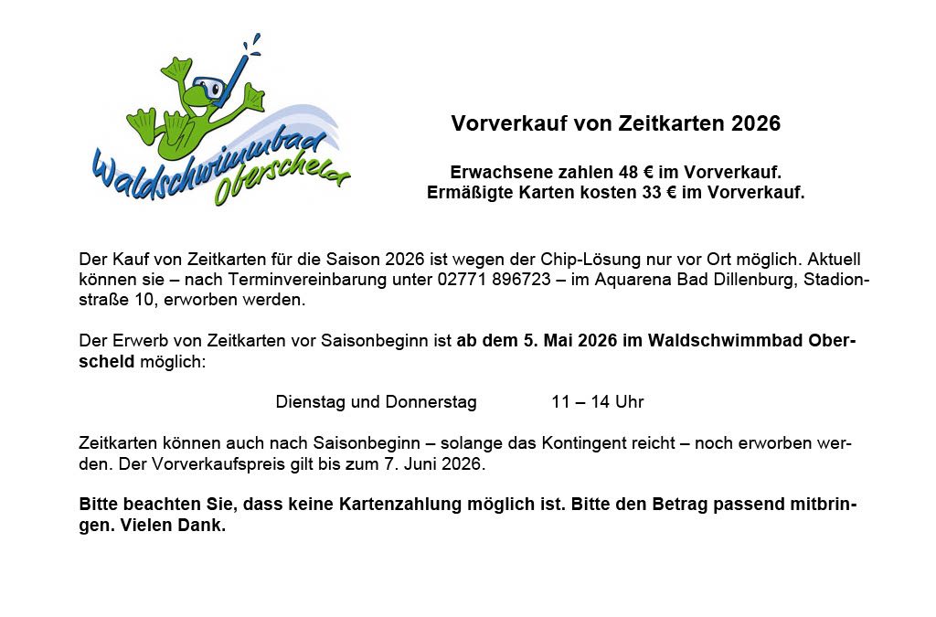 Der Kartenvorverkauf für die Saison 2026 startet im Waldschwimmbad Oberscheld am 5. Mai