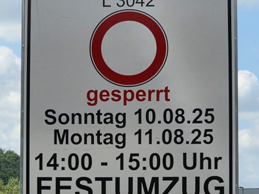 Die Ortsdurchfahrt ist am 10. (Sonntag) und am 11. August 2025 (Montag) zwischen 14 und 15 Uhr gesperrt. Nutzen Sie zu diesen Zeiten die Anreisemöglichkeit über Dillenburg, über die Hohl Richtung Eibach und dann den Abzweig Richtung Nieder- und Oberscheld in Richtung Schwimmbad.